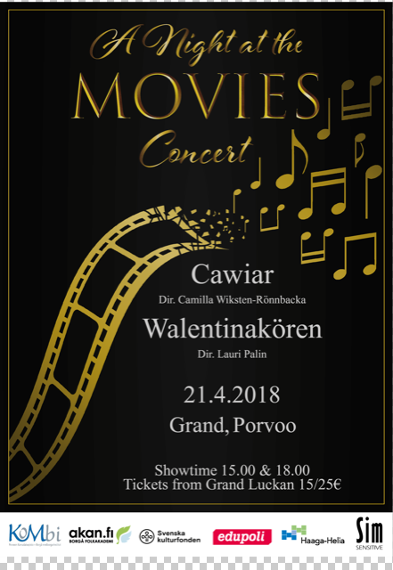 Den här gången blev det en helafton med musik från äldre och nyare musikaler och filmer. En stor del av sångerna är kända örhängen men många av dem uppfördes i nya arrangemang av körens dirigent Lauri Palin.