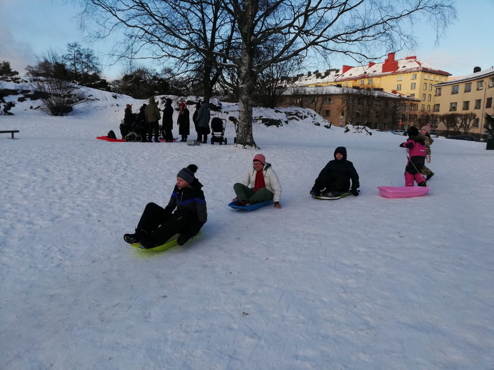 I stället träffades vi i pulkbacken och hade roligt.